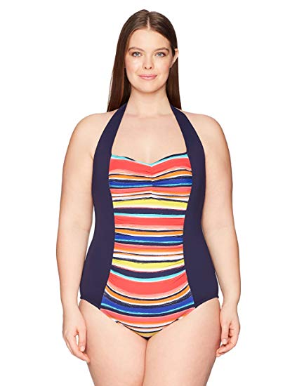 Anne Cole signature plus size triangle print tie side halter side splice bandeau one piece bathAnne Cole signature plus size triangle print tie side halter side splice bandeau one piece bathing suitin33.61 g suit