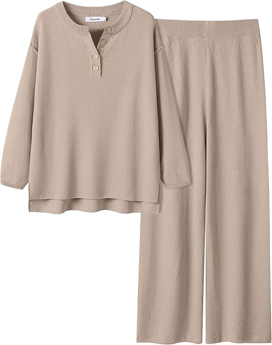 - Design -Top: crew neck, button design, oversized loose, side slit, dropped raglan sleeves; Pants: Elastic waistband, high-rise design, pull-on style. Worn as a set or separately to run errands or wear boots and wear it to dinner, it is so versatile you can wear it anyway you want.