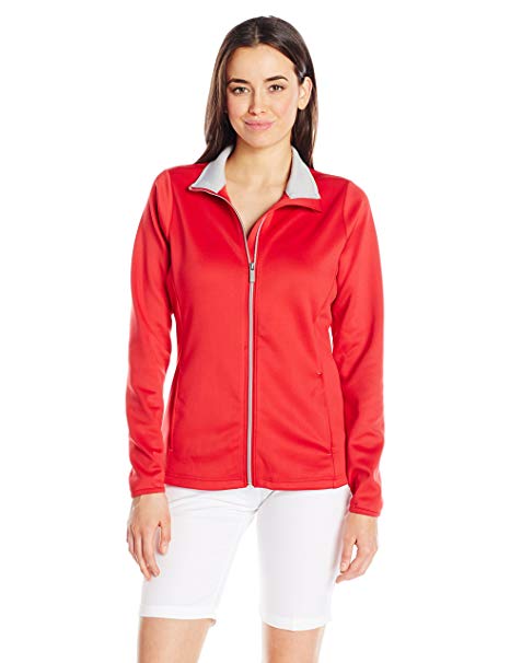 Heavy jersey full zip jacket with self fabric stand up collar contrast inside collar binding & zipper teeth Self fabric storm flap with zipper cover open on seam hand pockets bungee toggle bottom Desert Dry moisture wicking Embossed A logo at back neck.
