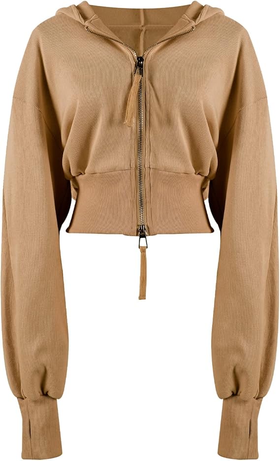 - Cropped Design: The cropped jackets for women are designed with short length, solid color and drop-shoulder, elastic rib cuffs and hem, loose fit, stylish, long-sleeve full-zip short sweatshirt with drawstrings hood.