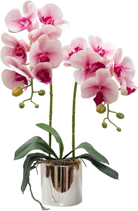 Simple but elegant, the fake orchid decor brings the brightness to life. It is a nice centerpiece for entryway table, work desk, dining table, dresser, nightstand, etc. These faux orchid flowers with vase are perfect decorations for bedroom, living room, dining room, kitchen, bathroom and any other place.