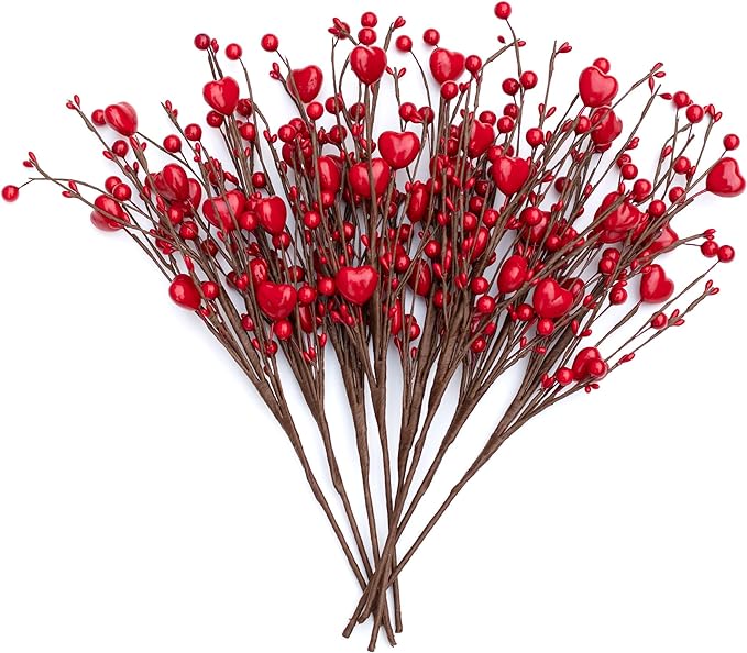 - Heart Berry Stem – One set of 8 pcs of Valentine’s Day picks are in vibrant color and creative design. Valentine stems have long-lasting beauty and will bring a romantic atmosphere to your home.
