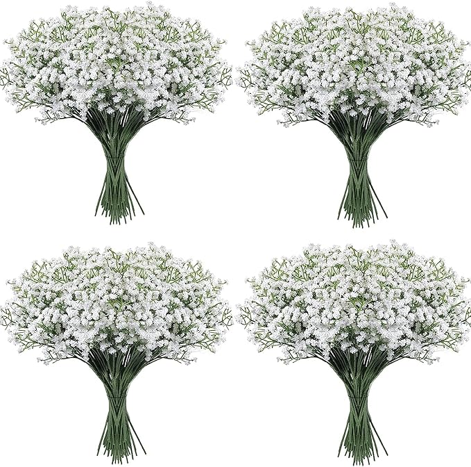 - Material: Flower head is rubber material,plastic stem, white gypsophila flowers.Wire wrapped with plastics is used for firmness and angle-adjustable in creating the stems
