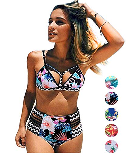 Boutique Two Piece Bathing Suits Swimsuits for Women Teen Girls Padding Biniki Top with Tummy Control High Waist Bottom