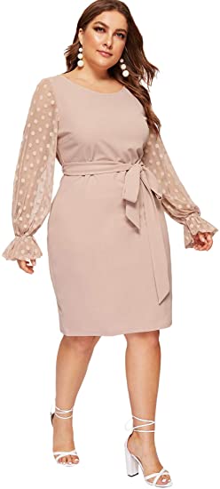 SheIn Women’s Plus Size Elegant Mesh Contrast Pearl Beading Sleeve Stretchy Bodycon Pencil Dress