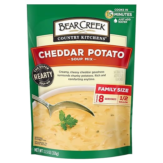 This rich Bear Creek soup tastes like you made it from scratch with a great cheese flavor and hearty potatoes, all seasoned perfectly with parsley, herbs and spices. Try adding crumbled bacon, sour cream and shredded cheddar cheese for variety. Yields about 8 one-cup servings. Warm up a slow cooker full tonight. Makes 8 servings or 1/2 gallon. Just add water! In a few simple steps, you can serve “homemade” soups that will satisfy every appetite in 15 minutes. High in the Heber Valley of the Wasatch Mountains, Bear Creek Country Kitchens began with one goal in mind: Deliver great hearty homestyle dishes that the whole family will enjoy. Combining high quality hearty ingredients with our special blend of spices, our soups are delicious, yet easy to prepare. In just minutes you can serve “homemade” soups that will satisfy every appetite.