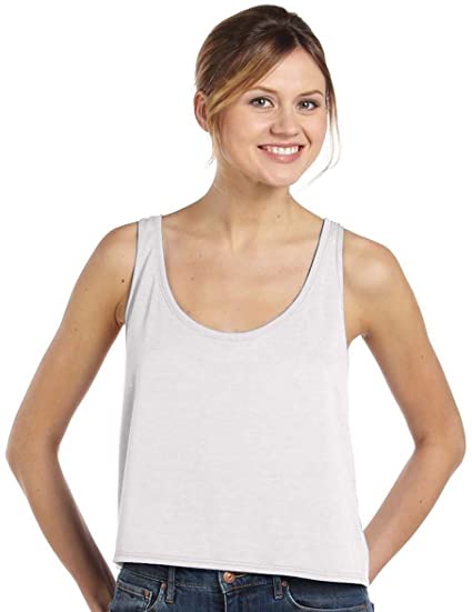 3.7 oz., 65% polyester, 35% viscose; 30 singles; Athletic Heather is 52% polyester, 48% viscose; Stripes are 70% rayon, 30% poly; Easy, drapey fit; Sideseamed; Cropped body length; Tear-away label