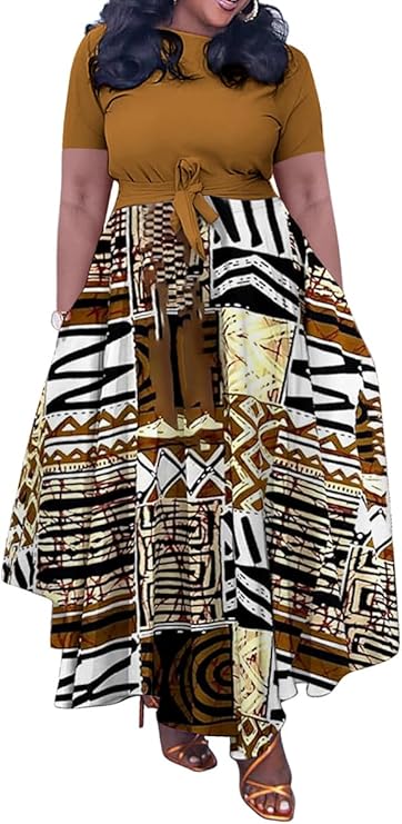 - ❤ Stylish: Plus size casual maxi dresses for women with belt, 3/4 sleeve, floor length dress, elegant swing hem. Rich colors can meet the needs of different occasions.