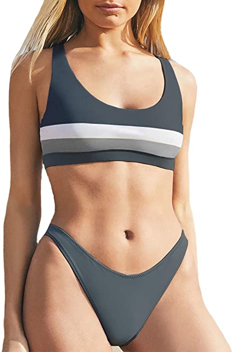 Sporty Bikini Top boasts a cropped silhouette, fixed straps, scoop neckline, and elastic band.
