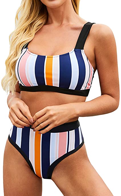 Yanekop Womens Striped Printed Bikini Set Push Up 2 Piece Swimsuits Bathing Suit
