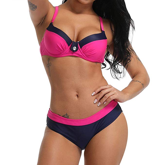 Women’s Push Up Color Block Two Piece Bikini with Underwire Set Padded Swimsuit Bathing Suit