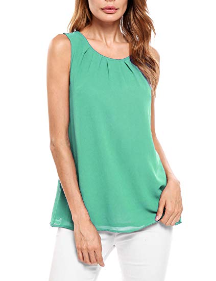 Beyove Womens Shell Tops Sleeveless Blouse Keyhole Chiffon Layered Tank Top