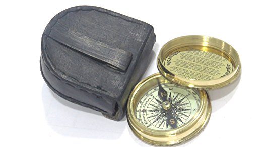 Artshai Brass Magnetic Compass with Leather Case Antique Style. Robert Frost Poem Engraved Compass Gift Shiny magnetic compass with leather case Excellent gifting and collectible option Size of compass: 2.5 inch Robert frost poem engraved in the compass