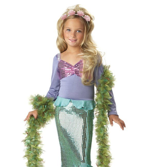 This is a Great Mermaid! Includes Sequin and Lurex mermaid dress and Headband with Foam Seashells! (Packaging may say “includes hairclips” – This is just old packaging, you will receive the Seashell Headband as pictured here) – These sizes are NOT true to size