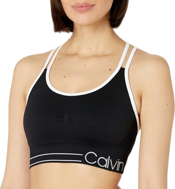 Engineered for low-impact workouts, this sports bra features 4-way stretch for maximum activewear comfort and a seamless design. Made with removable cups, a scoopneck and a supportive logo underband.