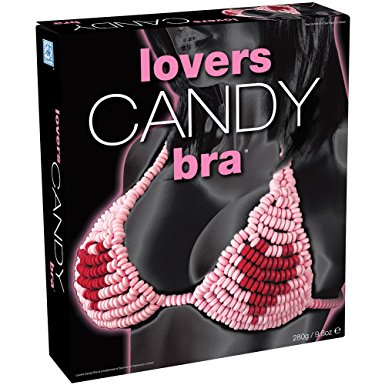This stretchable one-size-fits-most candy bra has traditional “candy necklace” beads with elastic strung throughout. This makes a wonderfully naughty gift for Valentines Day or any day you want to celebrate your “sweet” side.