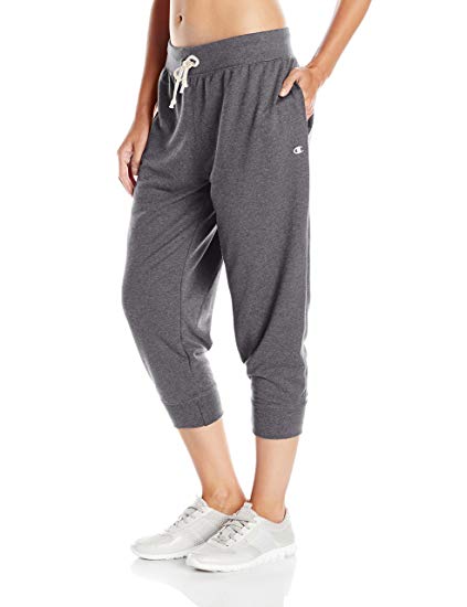 Quick to become your go-to capri, the Champion French terry jogger capri has a modern look with tapered legs, ribbed cuffs and relaxed fit.