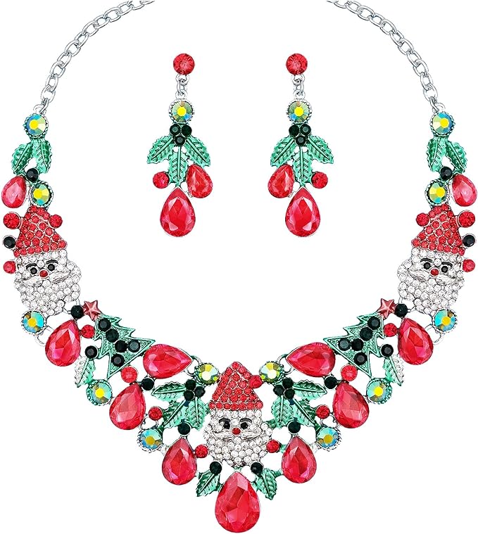 - Material: These pre-Christmas jewelry are made of high quality Zinc alloys with shiny crystal and rhinestones that we don’t worry about causing allergic reactions. Lightweight and does not stress to the ears and neck. Easy to wear and comfortable surface.