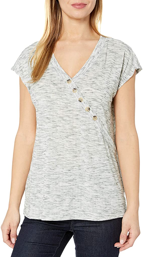 Chaus short sleeve heathered rib poly-blend v-neck knit top
