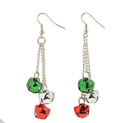 Christmas Jingle Bell Dangle Earrings Red Green and Silver Jewelry