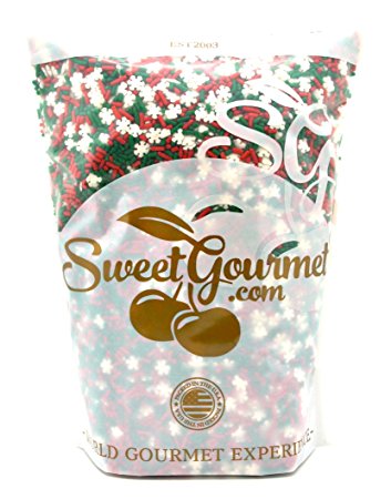 Add a touch of Christmas color to cupcakes and iced cookies with soft red and green sprinkles mixed with white snowflake shapes.