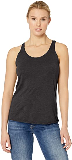 4.3 o., 50 percent polyester 25 percent cotton 25 percent rayon. Side seams; retail fit. Tear-away label. Racer back. Comfortable relaxed scoop neckline