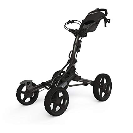 The Clicgear Model 8 is simply the most advanced four-wheel cart in the golf industry. It is engineered to fold easily while maintaining a high standard of quality and reliability. The Clicgear Model 8 features a handle mounted hand brake, 4 accessory tabs, 2 cup holders, handle lock lever, bag strap storage clip, umbrella holder, main lock slide handle, maintenance free airless tires, dual front brakes, oversized console with magnetic closure, step guard to keep the cart in place while folding, easily, adjustable dual front wheel alignment to ensure your cart will always steer straight and patented frame V-Slide to close. Our most durable and stable cart to date!