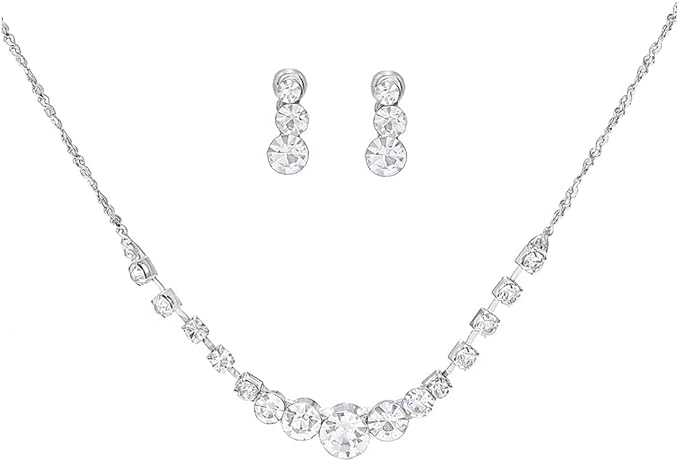 - A necklace and a pair of earrings(3 pieces).The necklace is an adjustable 48+9 cm (18.8+3.5in) chain. The earrings are 1.2 cm/0.4 in long and 0.5cm/0.1 in wide.