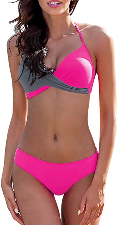 MetCuento Bikini Swimsuits for Women Criss Cross Halter Swimwear Tummy Comtrol Bathing Suits High Waited Bikini Set