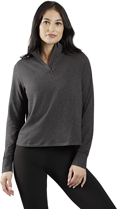 90 Degree By Reflex Cropped Two Tone Heather Long Sleeve Quarter Zip Jacket