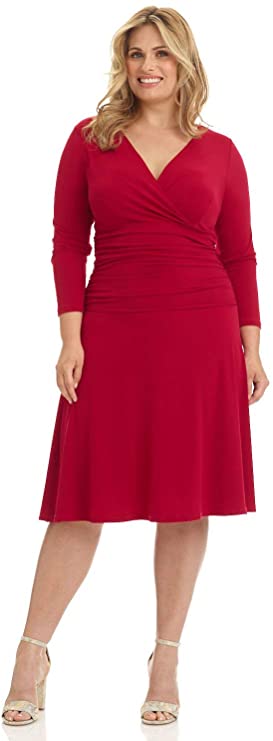 - Wide ruched waist and flared skirt enhance and give an hourglass figure.