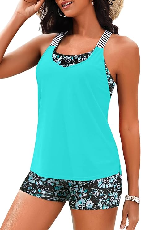 - Tankini with Shorts: High-waisted tummy control boyshorts prevent ride-up during swimming, volleyball, and other water sports.