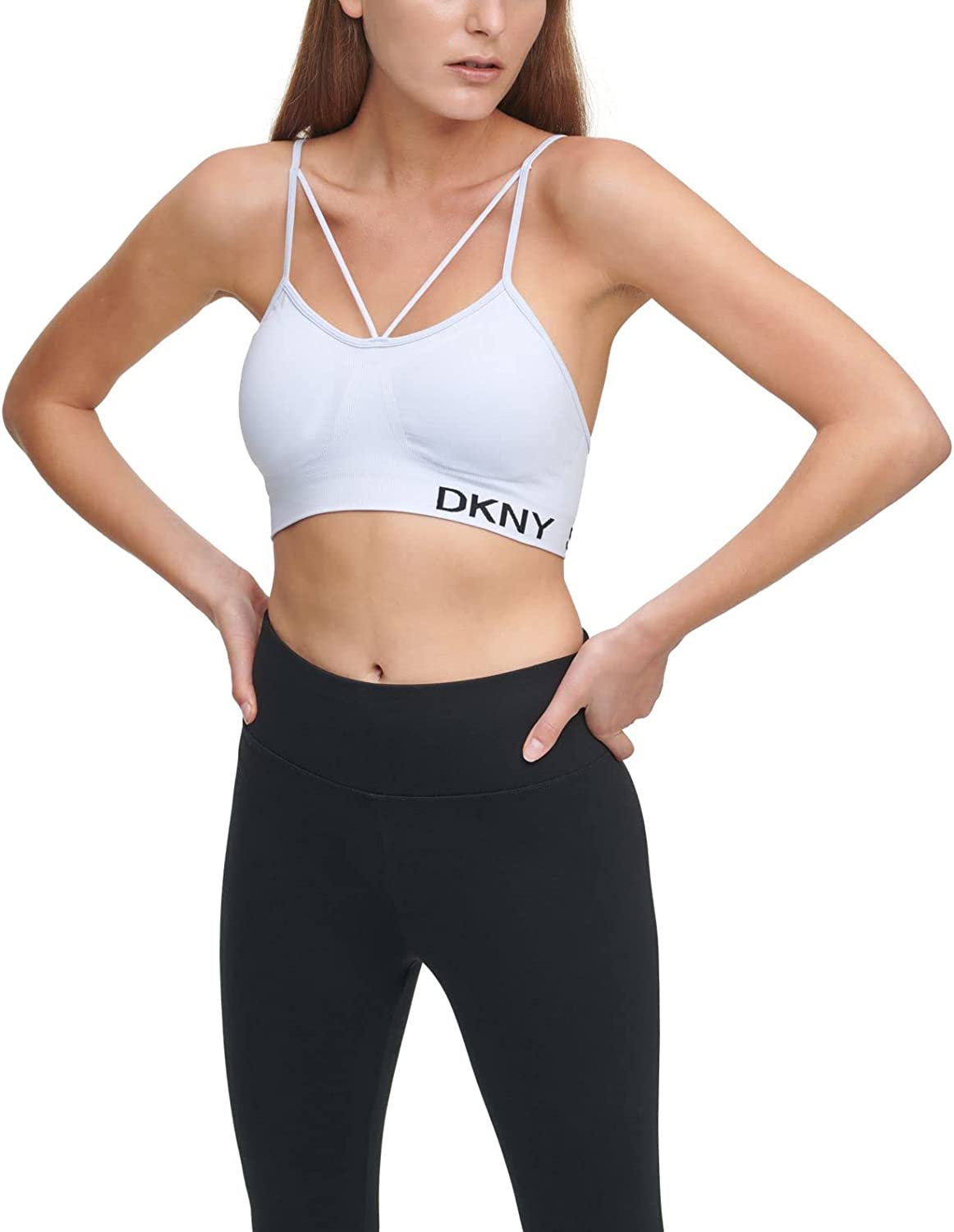 A smooth seamless fit with everyday comfort, this sports bra from DKNY Sport features stunning strappy details at the neckline and back. Removable cups enhance the low-impact support.