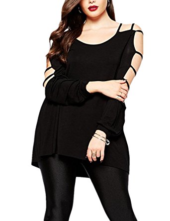 More chic than you think, this plus black blouse quickly gets hot among fashion ladies across the world. Plus Cut out Swing Arm Top not only designed with a fashionable style with cut out and swing arms, its black color also has a rather good slimming effect and easily pair perfectly with any bottom. Extremely soft breathable fabric made ensures endless comfort.