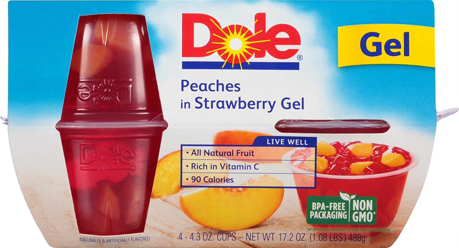 Dole Fruit in Gels are all natural fruit in refreshing gel. Founded in Hawaii in 1851, Dole is the world’s largest producer and marketer of high-quality fresh fruit and fresh vegetables. Dole markets a growing line of packaged and frozen foods, and is a produce industry leader in nutrition education and research. The Dole brand means the finest, high-quality products. Dole will continue to meet customers’ expectations by consistently providing products that meet the highest standard – the Dole standard. For Dole, anything less is unacceptable.