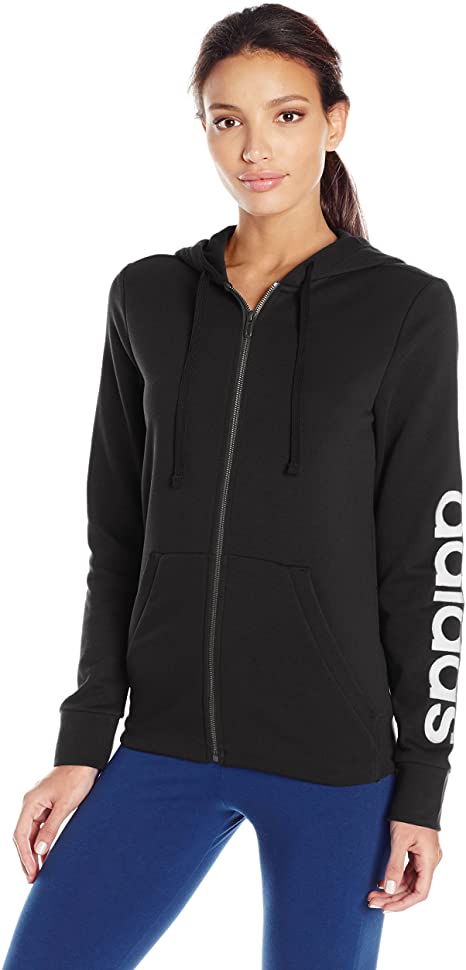 This women’s hoodie is made of a soft cotton blend in French terry that keeps you cozy and comfortable. The full zip gives you total coverage and easy on-and-off, and climalite sweeps away sweat from your skin. Featuring the linear adidas logo on the left arm.