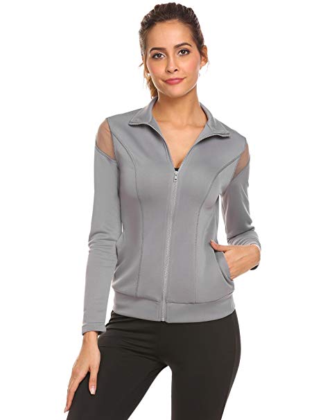 Zeagoo Women’s Lightweight Active Full Zip Up Mesh Running Workout Jacket with Pockets