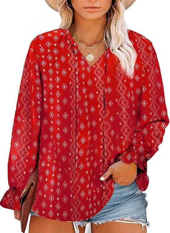 - Plus size chiffon tops features boho floral print,sexy v neck,long sleeve,casual loose style fits for any body shape,and a floral print shirt necessary for women wardrobe.