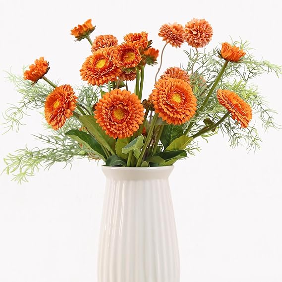 - Dimensions: Each pack includes 6 silk daisies, 2 pompon flowers, and 2 branch artificial rosemary sprigs. Please note that the vase is not included. The overall height of the arrangement is approximately 15 inches without a vase.
