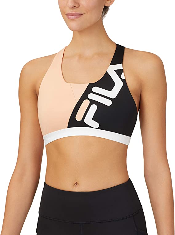 Women’s performance sports bra with removable cups. Sleek logo detailing on the banded straps with high brand read across the front chest.