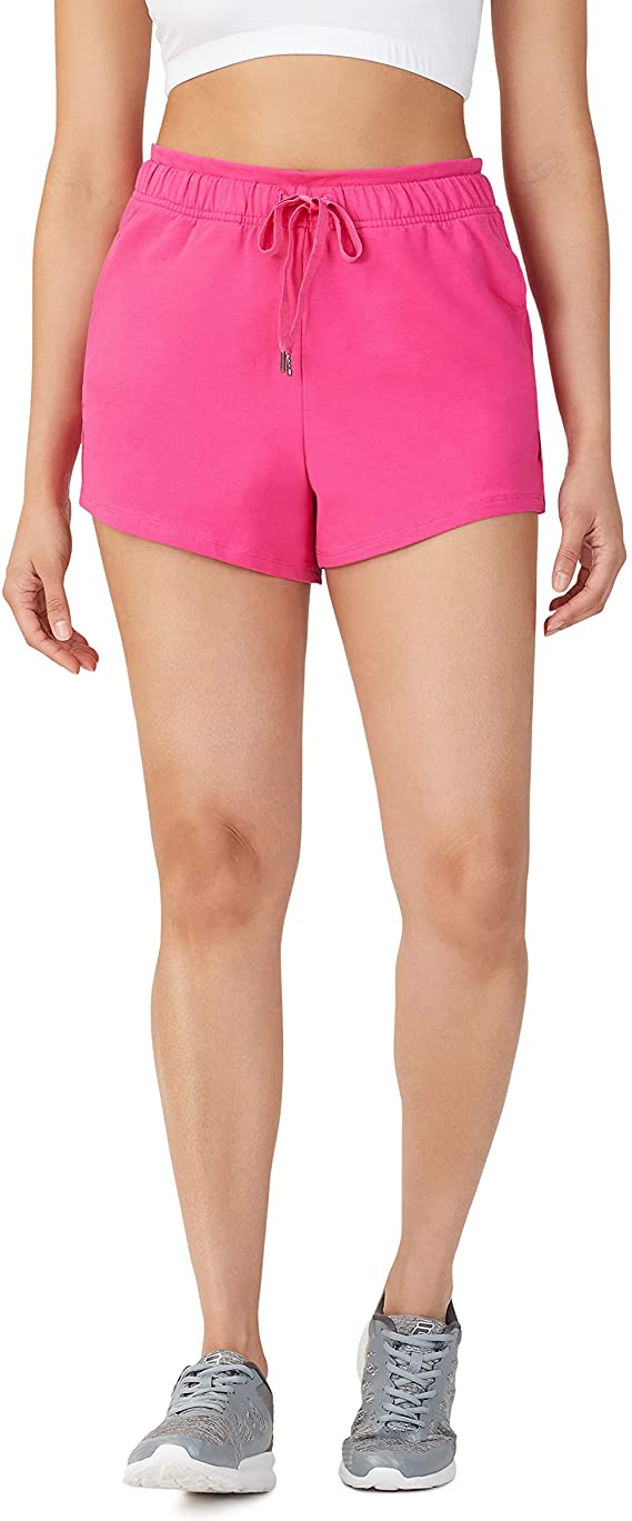 Light cotton french terry short. Double elastic waistband with outside contrast color drawcord. Side seam pockets.