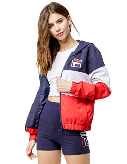After-workout comfort just got a whole lot easier with the FILA® Luella Woven Wind Jacket. Durable polyester construction. Attached hood. Front zipper closure. Brand hit on left chest. Long sleeves with elastic cuffs. Hand pockets. Straight hemline. 100% polyester. Machine wash, tumble dry. Imported. Measurements: Length: 23 in Product measurements were taken using size SM. Please note that measurements may vary by size.
