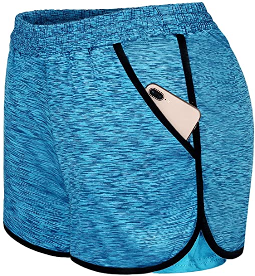 Blevonh Womens Cozy Banded Waist Running Fitness Workout Shorts with Pockets