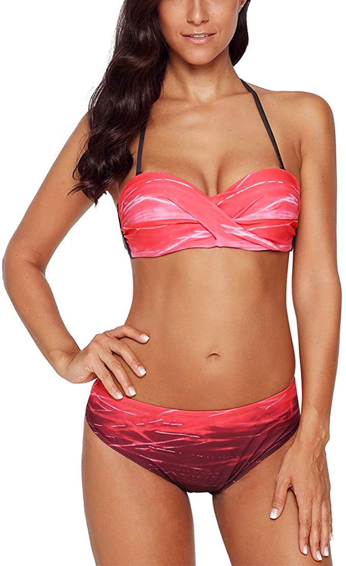 Exlura Bikini Set Sexy Floral Print Bikini 2 Piece Swimsuit Push Up Padded Swimwear