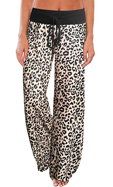AMiERY Women’s Comfy Casual Pajama Pants Floral Print Drawstring Palazzo Lounge Pants Wide Leg