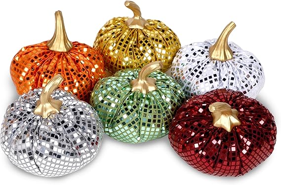 - Unique & Exquisite — These sparkly fall pumpkin decoration with vivid and lifelike shapes and colors, bright and vibrant, with golden pumpkin vines on top, sparkling colored sequins on the surface, these artificial fall pumpkins will sure to make your family or friends feel warm and welcome, it will be a hit at your Thanksgiving party.