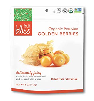 Fruit Bliss Organic Peruvian Golden Berries are deliciously juicy whole fruit, sun sweetened and infused with water.