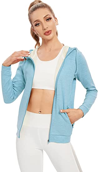 Women’s Fleece Full Zip Athletic Running Jackets Thermal Hooded Workout Sportswear with Pockets