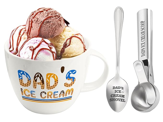 - PRACTICAL GIFT FOR DADS – Our Dad’s Large Ice Cream Bowl holds more ice cream or cereal and brings satisfaction when eating ice cream with double the pleasure. The ice cream scoop helps you scoop a perfect ball of ice cream, and the spoon is fun and practical, large enough to be more suitable for men.