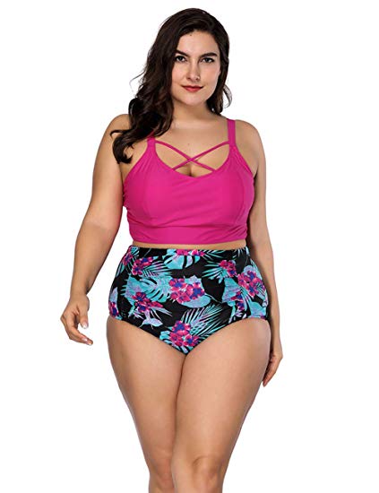 This Womens Swimwear Plus Bikini Cut Out Back High Waisted with underwire, unremovable pads and adjustable straps can show off your perfect figure. Besides, the match of floral print and solid color, the criss-cross and cut-out details make you sexier.